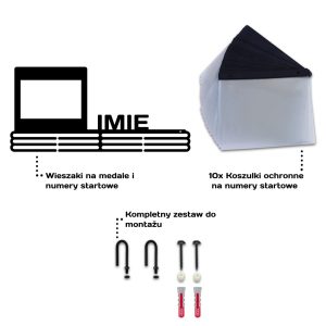 * pojemność ilość medali wiszących na wieszaku zależy od szerokości taśmy. Jeśli zawiesisz medale jeden nad drugim, pojemność wieszaka zwiększa się dwukrotnie.