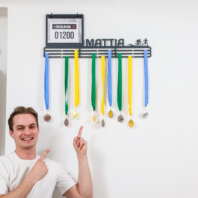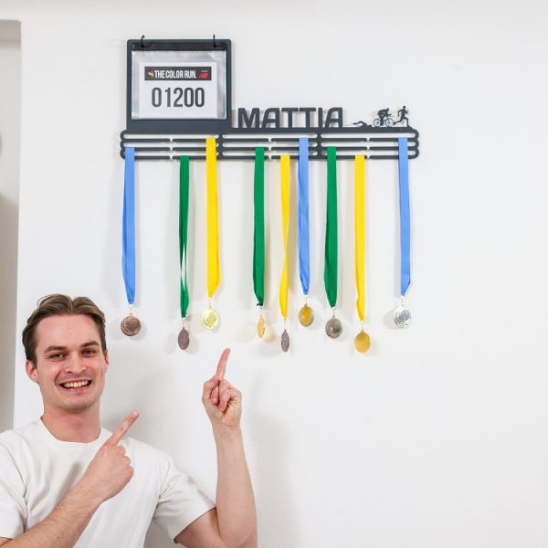 Prezentuj swoje ciężko zdobyte nagrody za pomocą naszego wysokiej jakości, montowanego na ścianie, Wieszaka na Medale. Wykonany z wytrzymałej stali i pokryty wysokiej jakości powłoką, to nie jest zwykły wieszak na medale - to świadectwo Twoich zwycięstw! W przeciwieństwie do powszechnych wieszaków drewnianych, nasz wyróżnia się wyższą wytrzymałością, eleganckim designem i długowiecznością. Łatwy w montażu, z dołączonymi wszystkimi niezbędnymi materiałami, to doskonały prezent dla każdego Entuzjasty Sportu lub idealne uzupełnienie dla Wspierającego Rodzica, który kibicuje swojemu mistrzowi. Pamiętaj, każdy medal opowiada historię - upewnij się, że Twoje są zawieszone z należnym im szacunkiem. Nie czekaj - świętuj swoje zwycięstwa z klasą już dziś!