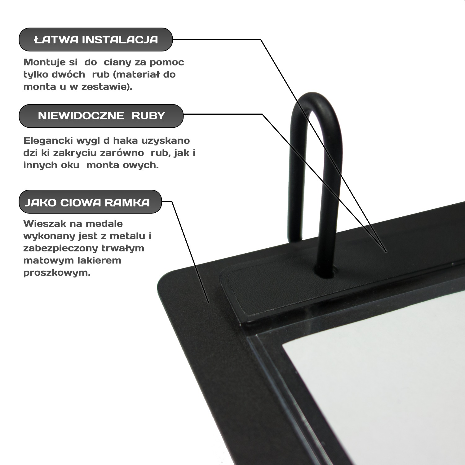 * pojemność ilość medali wiszących na wieszaku zależy od szerokości taśmy. Jeśli zawiesisz medale jeden nad drugim, pojemność wieszaka zwiększa się dwukrotnie.